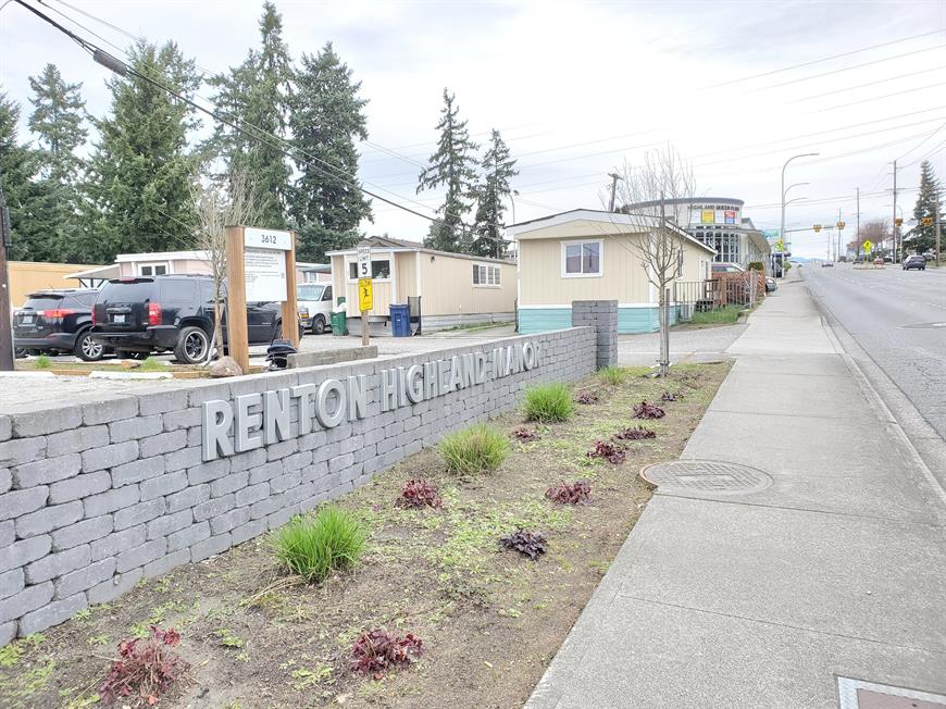 Welcome to the all-aged community of Renton Highland Manor. We are in walking distance to four parks; near Highland pre/elementary school and Renton Technical College. Our community is on a main bus line that is easily accessible. Close to I-405, I-5, 167, downtown Seattle, Bellevue Square, and Southcenter Mall. Close to locally owned businesses and much more! (garbage included in lot rent)