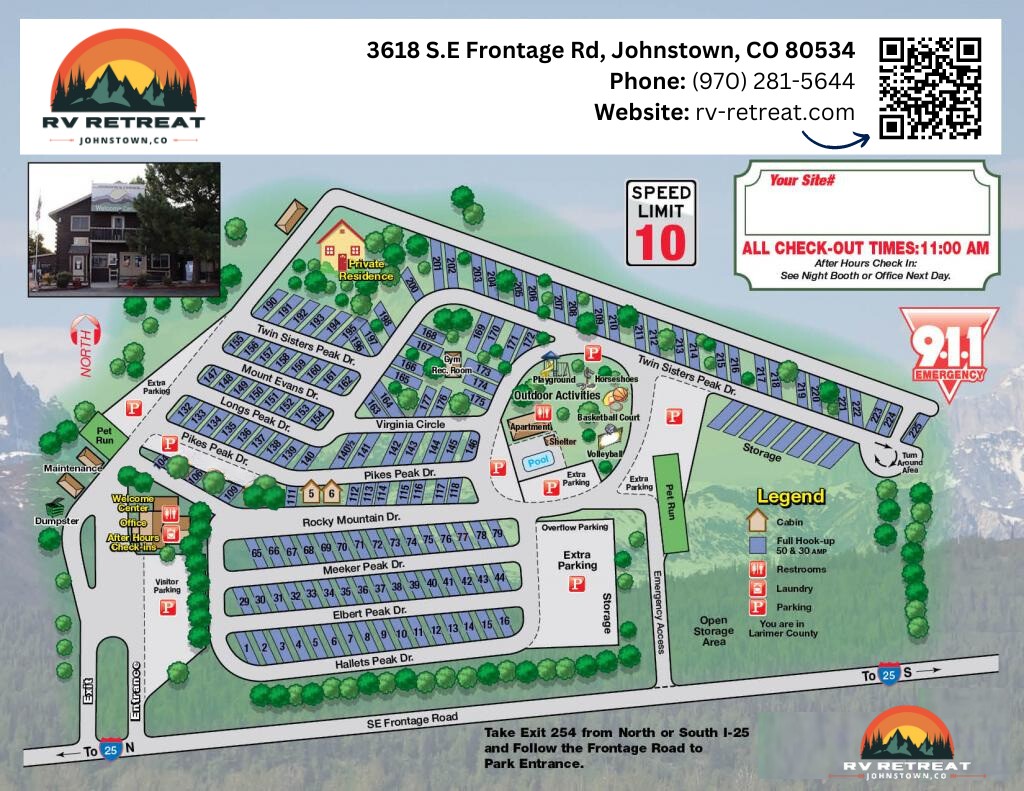 Colorado offers a variety of activities and scenic beauty making your stay at RV Retreat at Johnson's Corner a central location to enjoy so much of what Colorado has to offer! Located an hour north of Denver and 15 minutes southeast of Loveland, we are conveniently located nearby: Various parks, skate parks, and sports parks, a large selection of restaurants and shopping, Northern Colorado Regional Airport...and MUCH more! Our amenities include: Heated outdoor pool (open Memorial Day-Labor Day), children's playground, showers and laundry coin operated (open 24/7) and, 2 fenced pet runs.