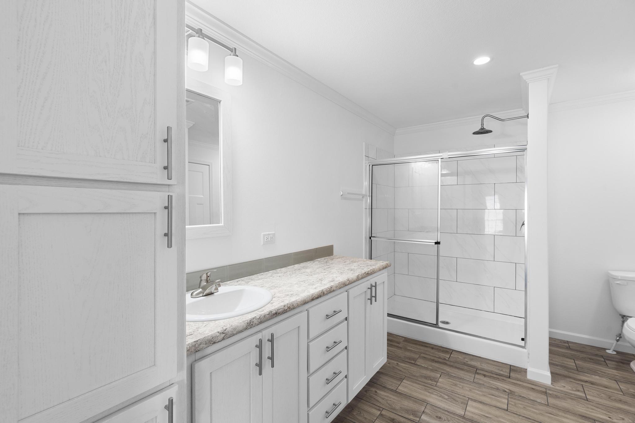- A walk-in shower
