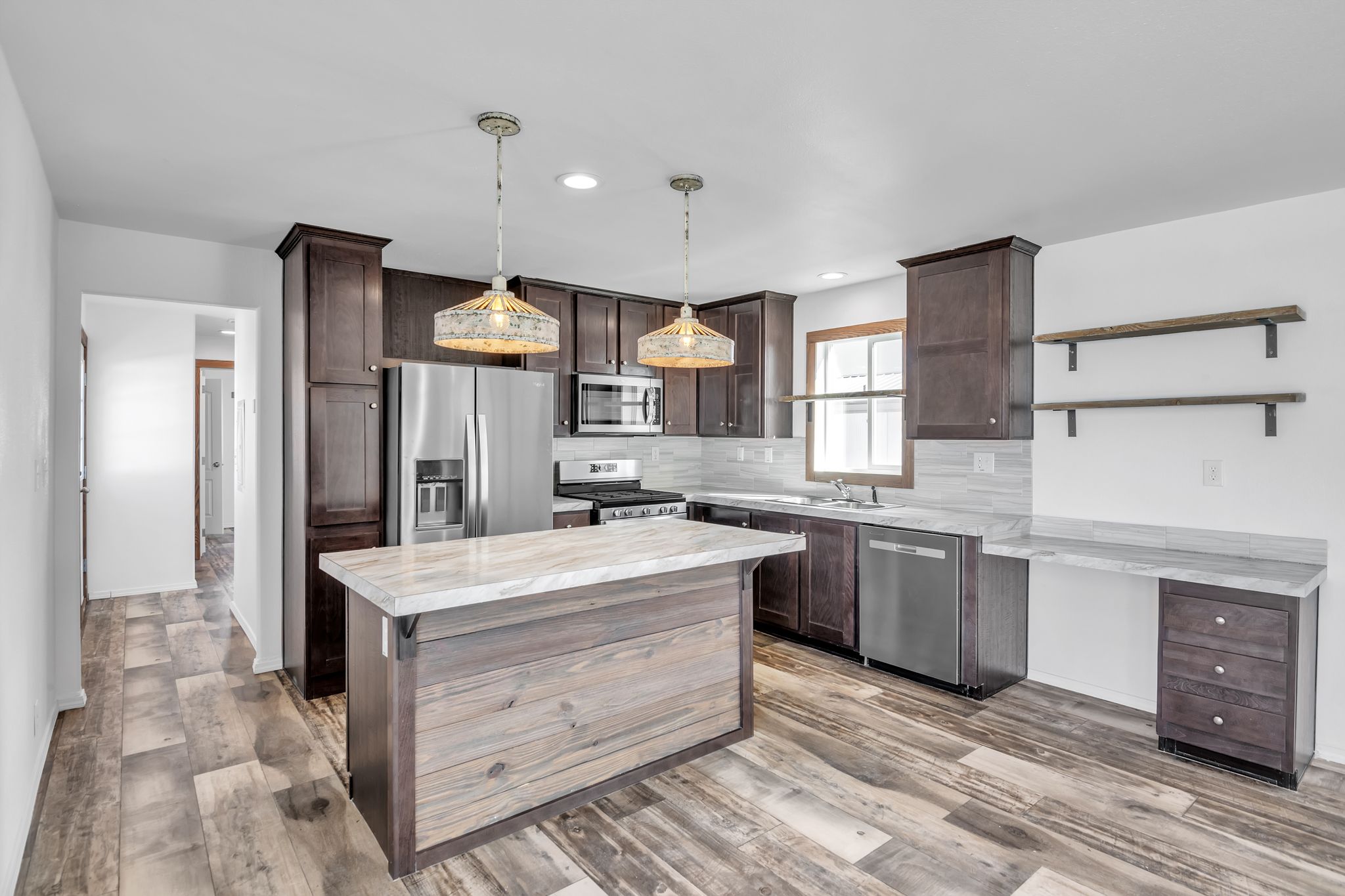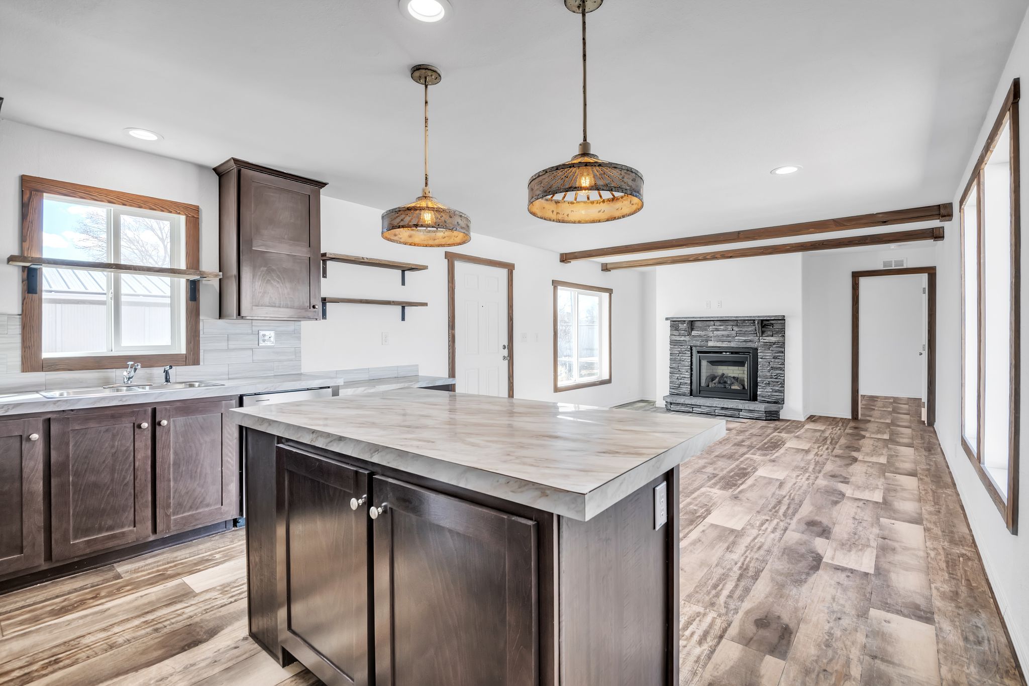 Spacious 3-bedroom, 2-bath home featuring a stunning kitchen island, brand-new electric fireplace, and an oversized master shower. Nestled in a quiet community, this home offers comfort and modern upgrades in a serene setting.