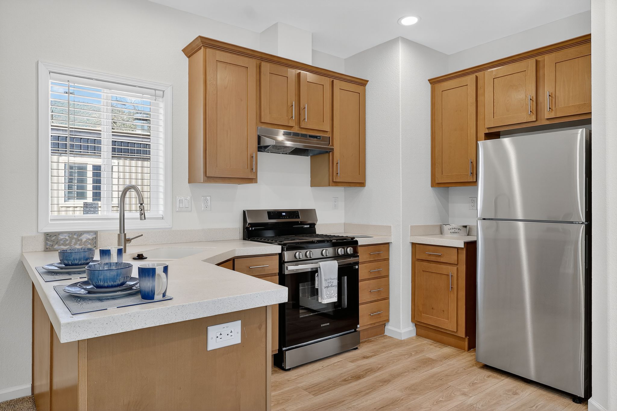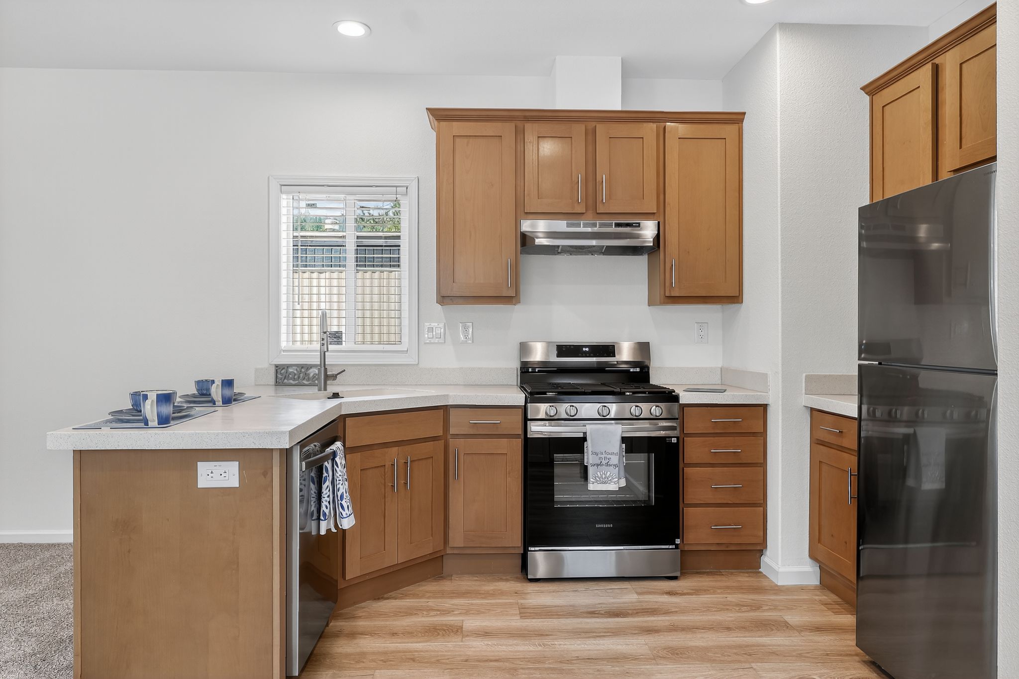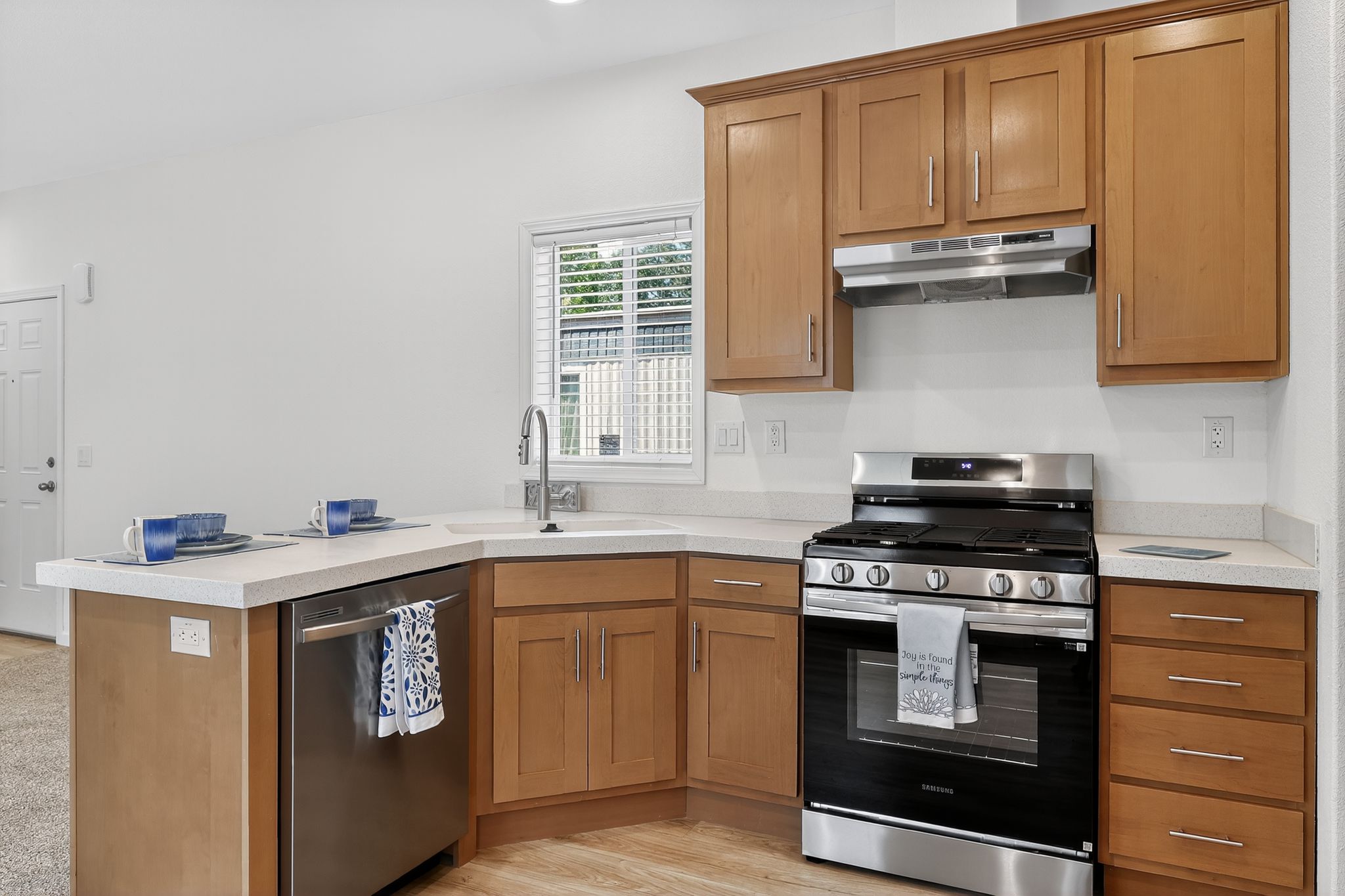 This home features 3bd/2ba, each bedroom boasts a walk in closet. Your new kitchen offers stainless steel appliances, gas range, dishwasher, garbage disposal and ample cabinet space PLUS solid surface countertops. This beautiful home offers an abundance of natural light, 2' faux wood blinds on all windows. Large Primary bath shower and full tub/shower combo in hall bath. EcoBee, smart home thermostat, will help save money on utilities.