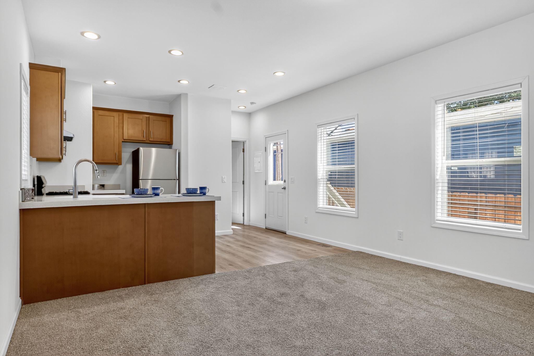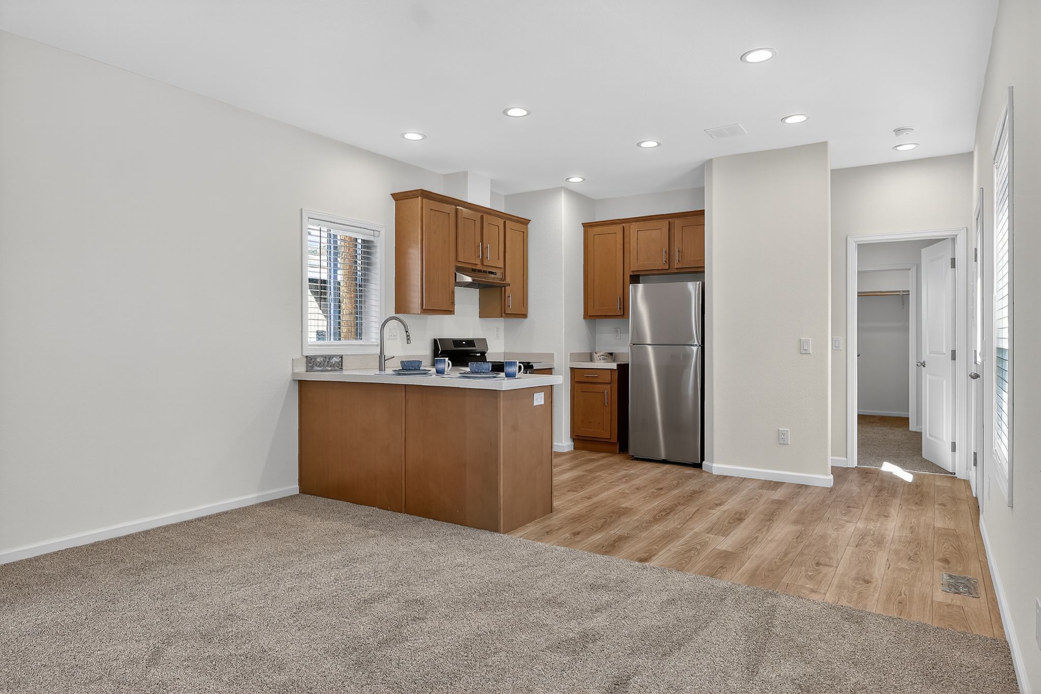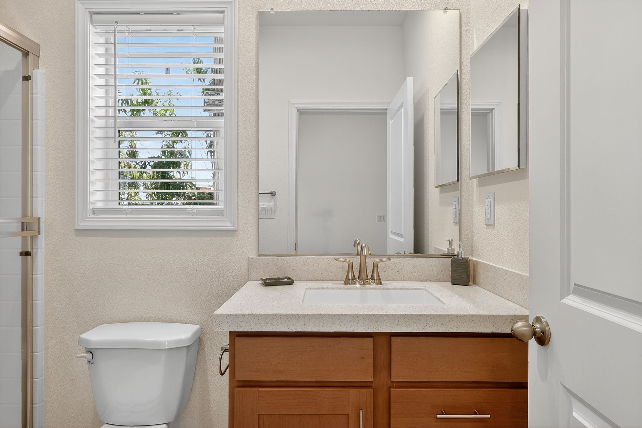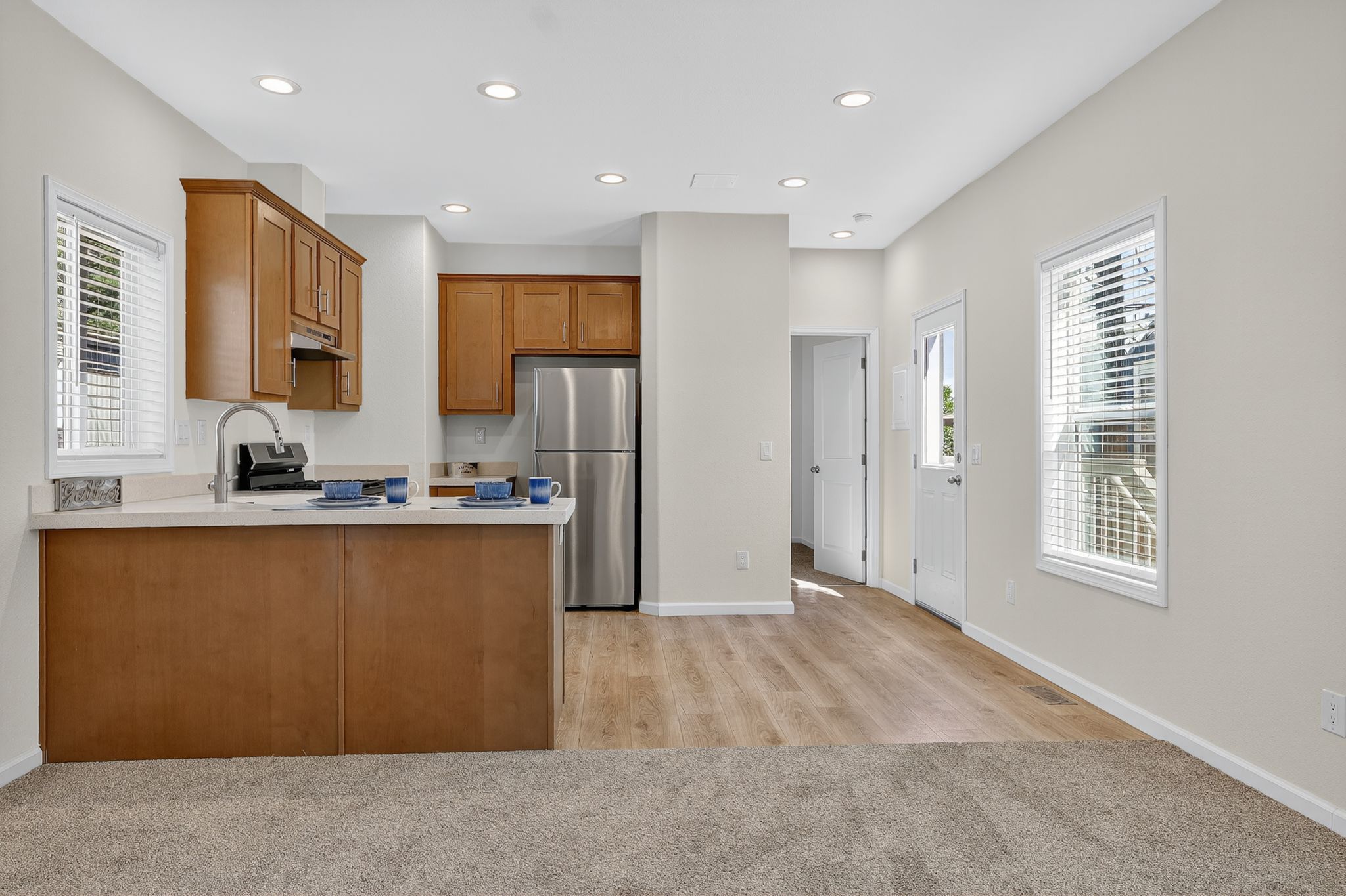 This home features 3bd/2ba, each bedroom boasts a walk in closet. Your new kitchen offers stainless steel appliances, gas range, dishwasher, garbage disposal and ample cabinet space PLUS solid surface countertops. This beautiful home offers an abundance of natural light, 2' faux wood blinds on all windows. Large Primary bath shower and full tub/shower combo in hall bath. EcoBee, smart home thermostat, will help save money on utilities.