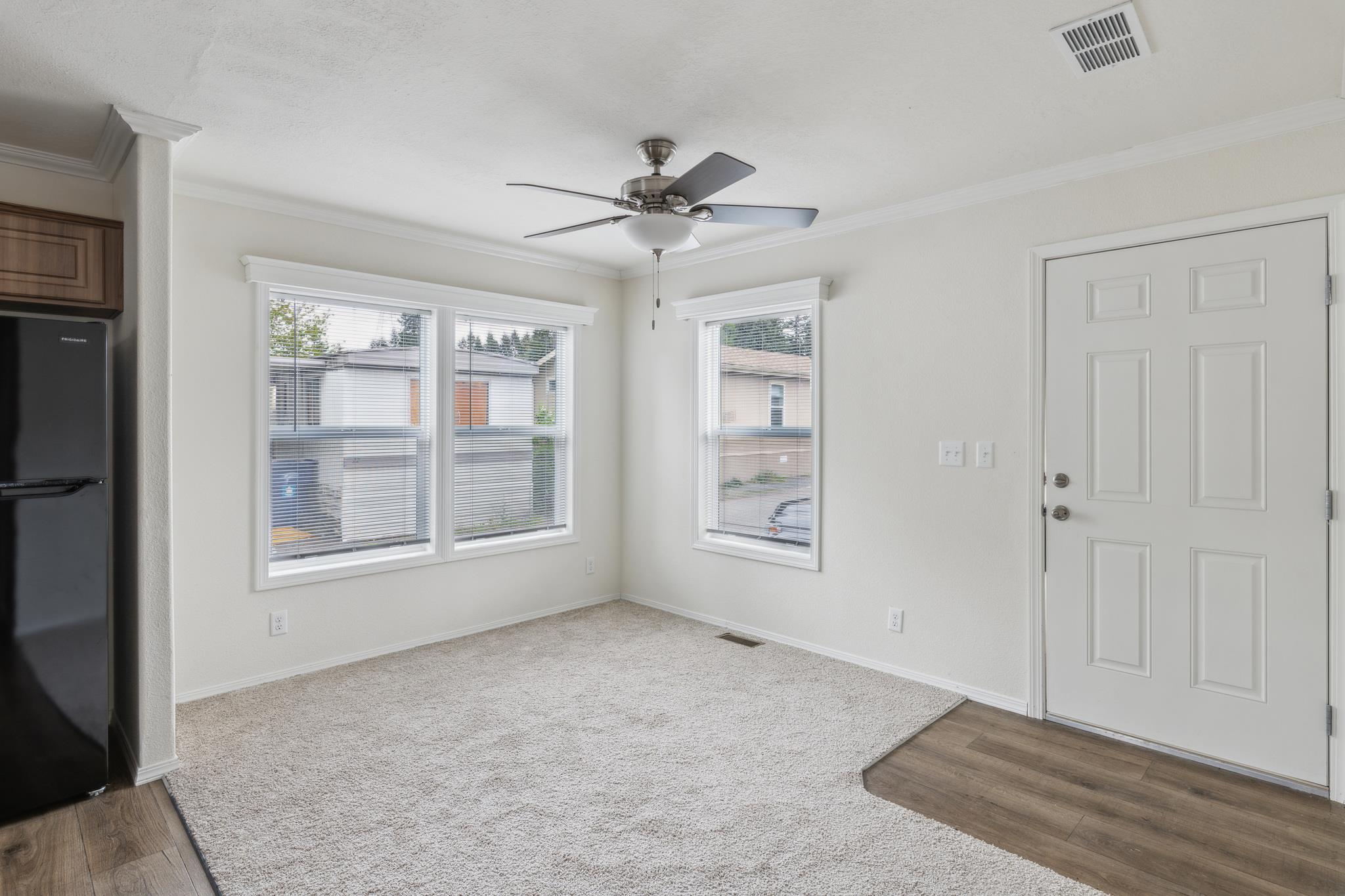 Beautiful 2 bed, 2 bath home located in Renton, WA, minutes from a grocery store, and within proximity to I-5 and I-405. This home features a large master bedroom with two windows, a large walk-in closet, and a full-size bathroom. The large U-shaped kitchen has gorgeous wood cabinets and plenty of counter space. Right off the kitchen is the cozy living room with several windows. The second bedroom and bathroom are a great size with good natural light. The home has beautiful crown molding throughout, which adds a nice touch of character.