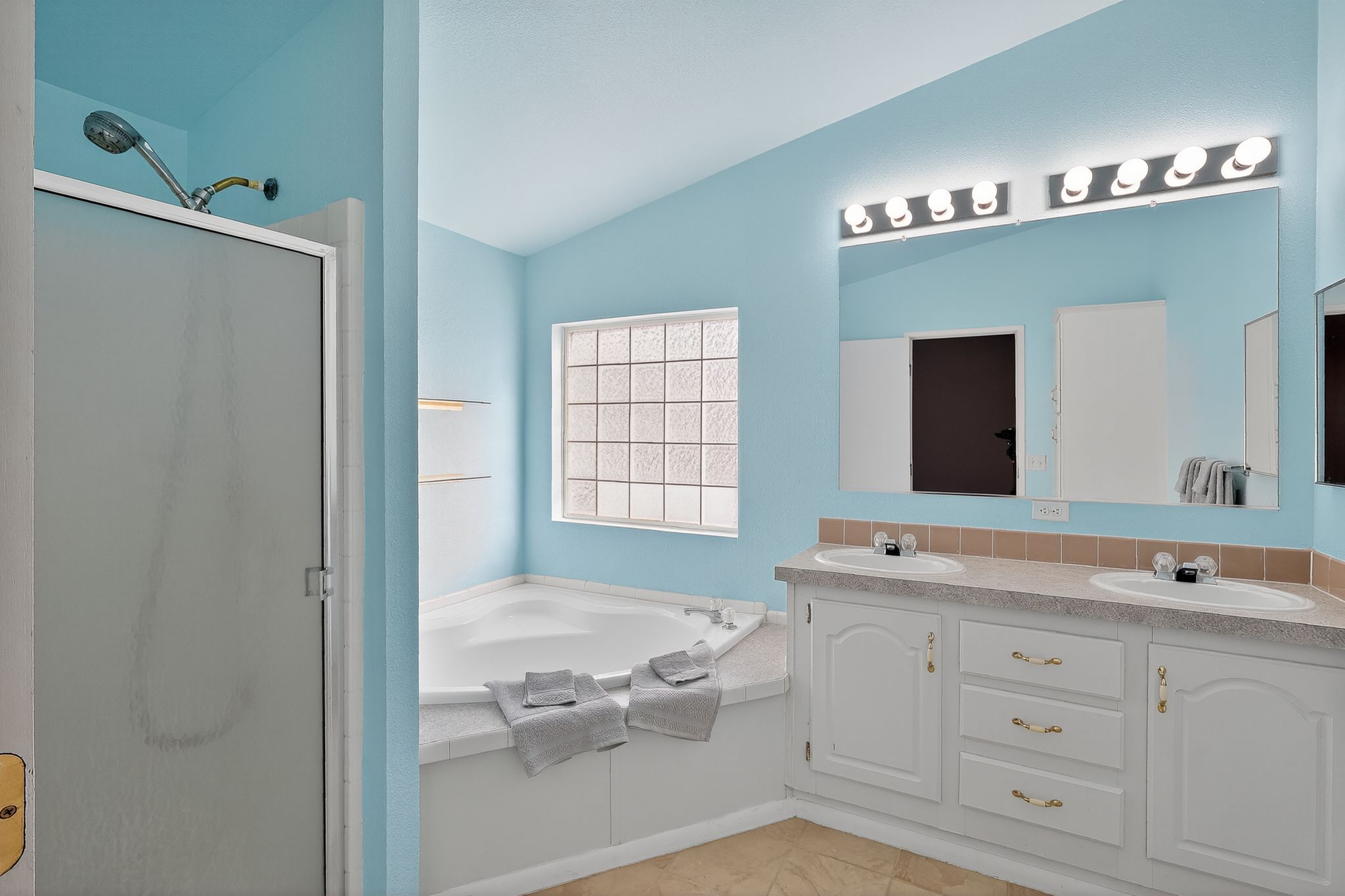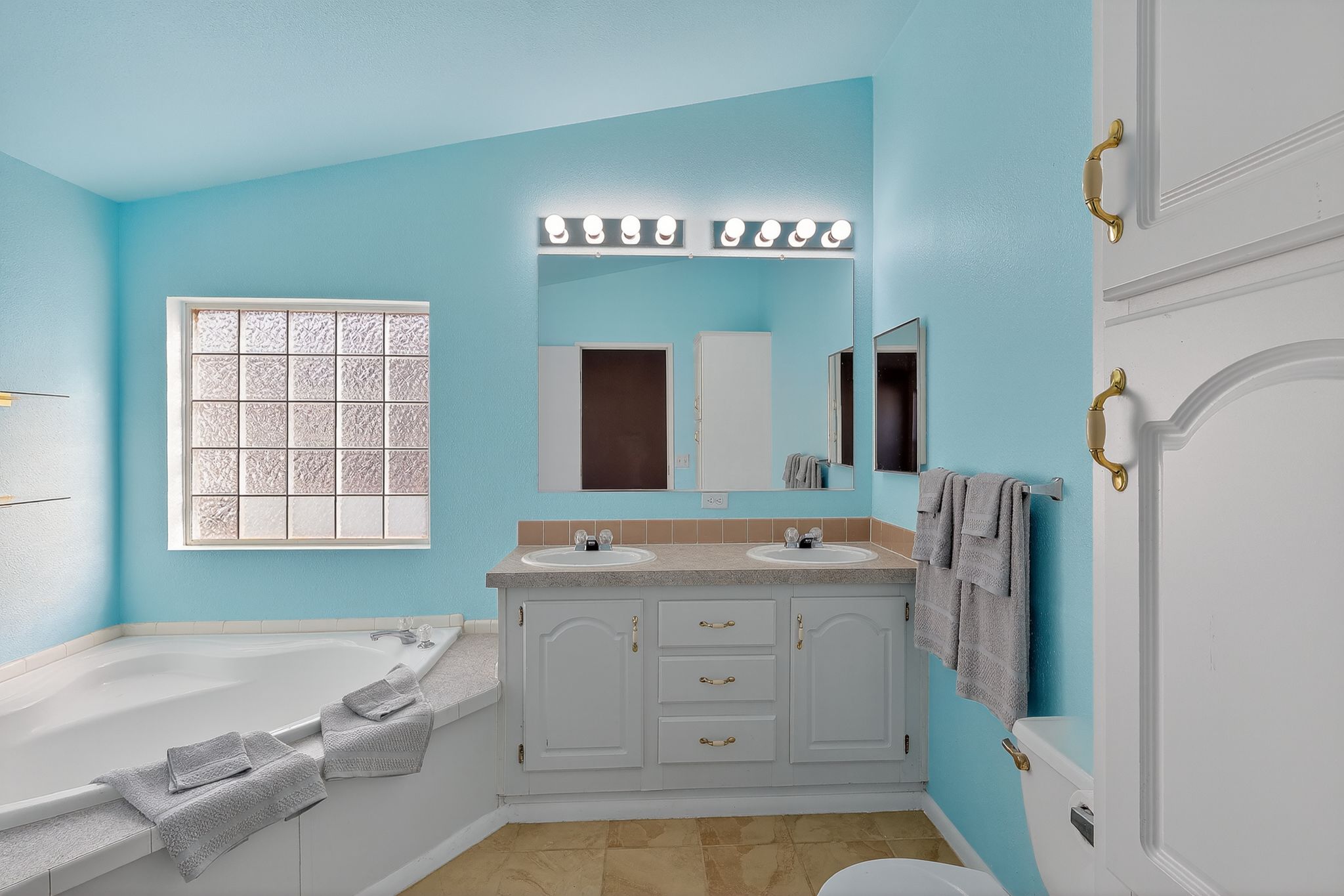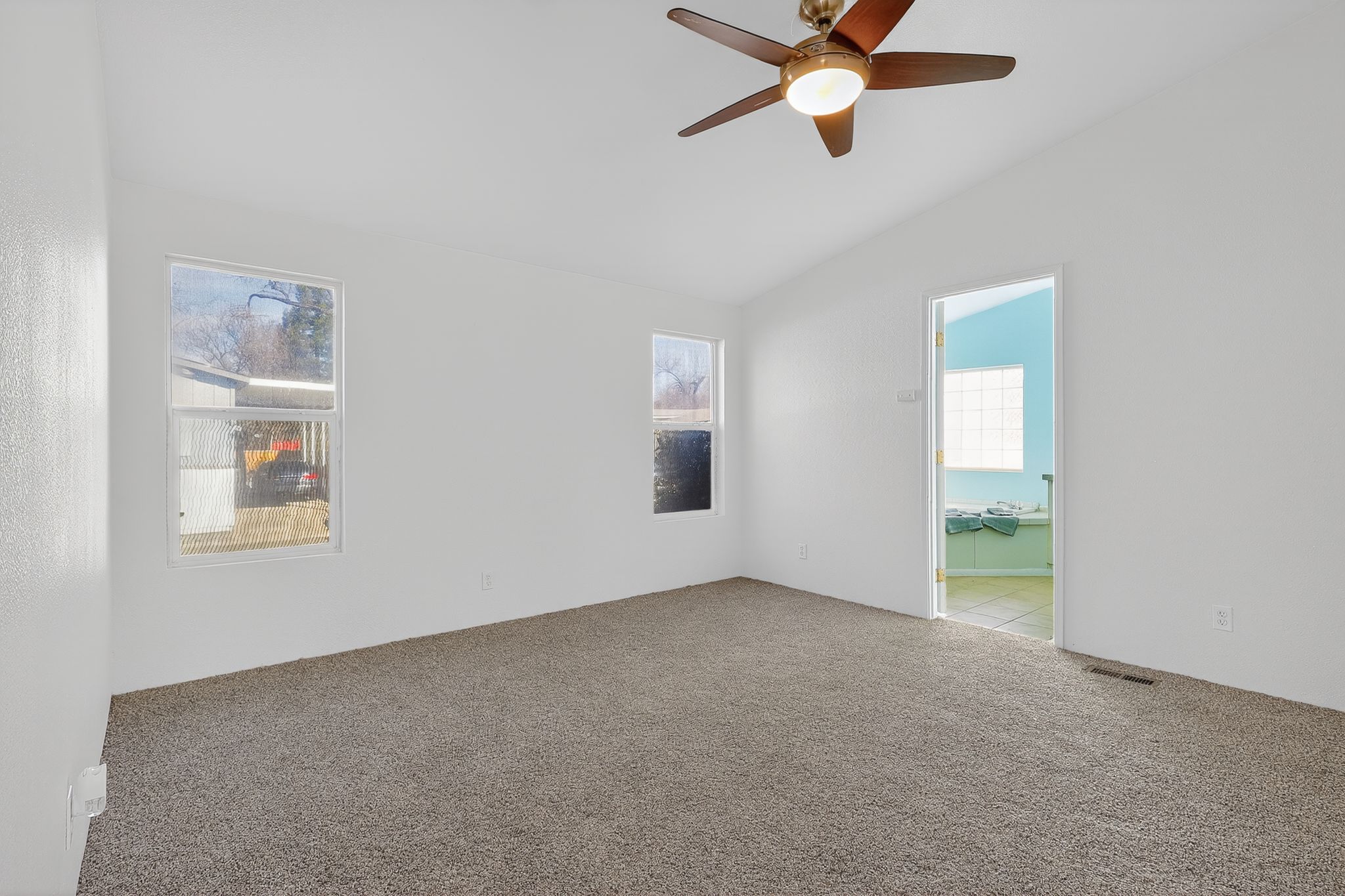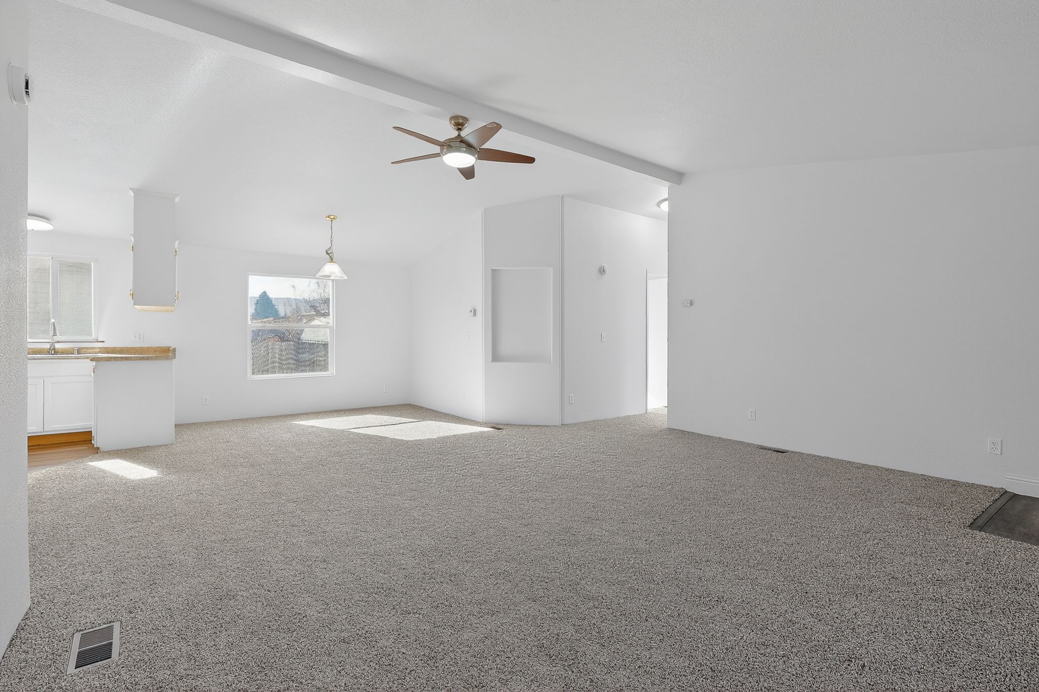 Step into 1,400 square feet of fresh, inviting living space featuring three comfortable bedrooms and two full bathrooms. This well-kept home welcomes you with high ceilings and abundant natural light, enhanced by a fresh coat of paint and brand-new carpet throughout. The layout includes a formal dining area ideal for gatherings, plus an eat-in kitchen—whether you're whipping up pancakes or hosting Taco Tuesday, there's room to spare. The primary bedroom offers a spacious walk-in closet and an en suite bathroom complete with a soaking tub and separate shower, providing a quiet retreat at day's end.